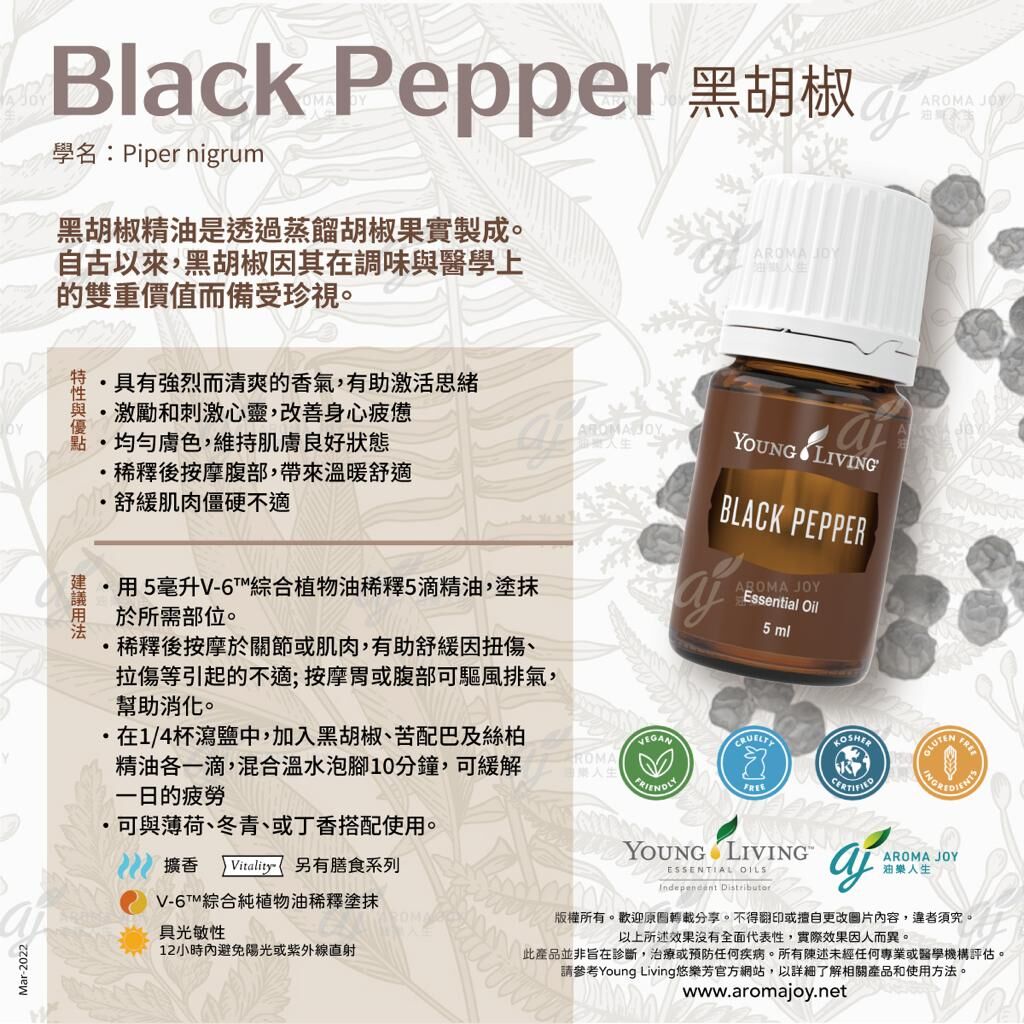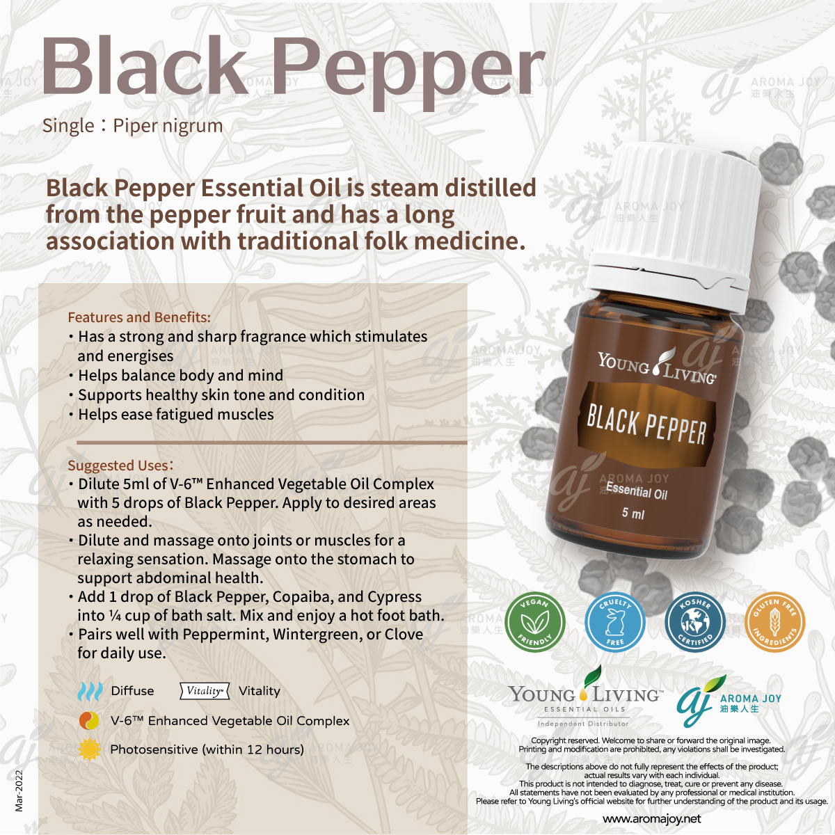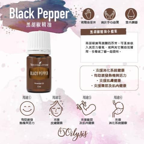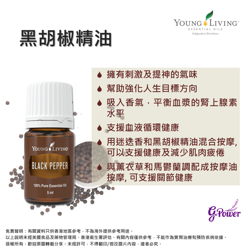 用 Young Living 黑胡椒精油 為你的生活增添活力!🌿 其溫暖辛香能促進血液循環、提升專注力,並舒緩運動後的肌肉緊繃 💪✨。是按摩調配與日常活力的必備之選!