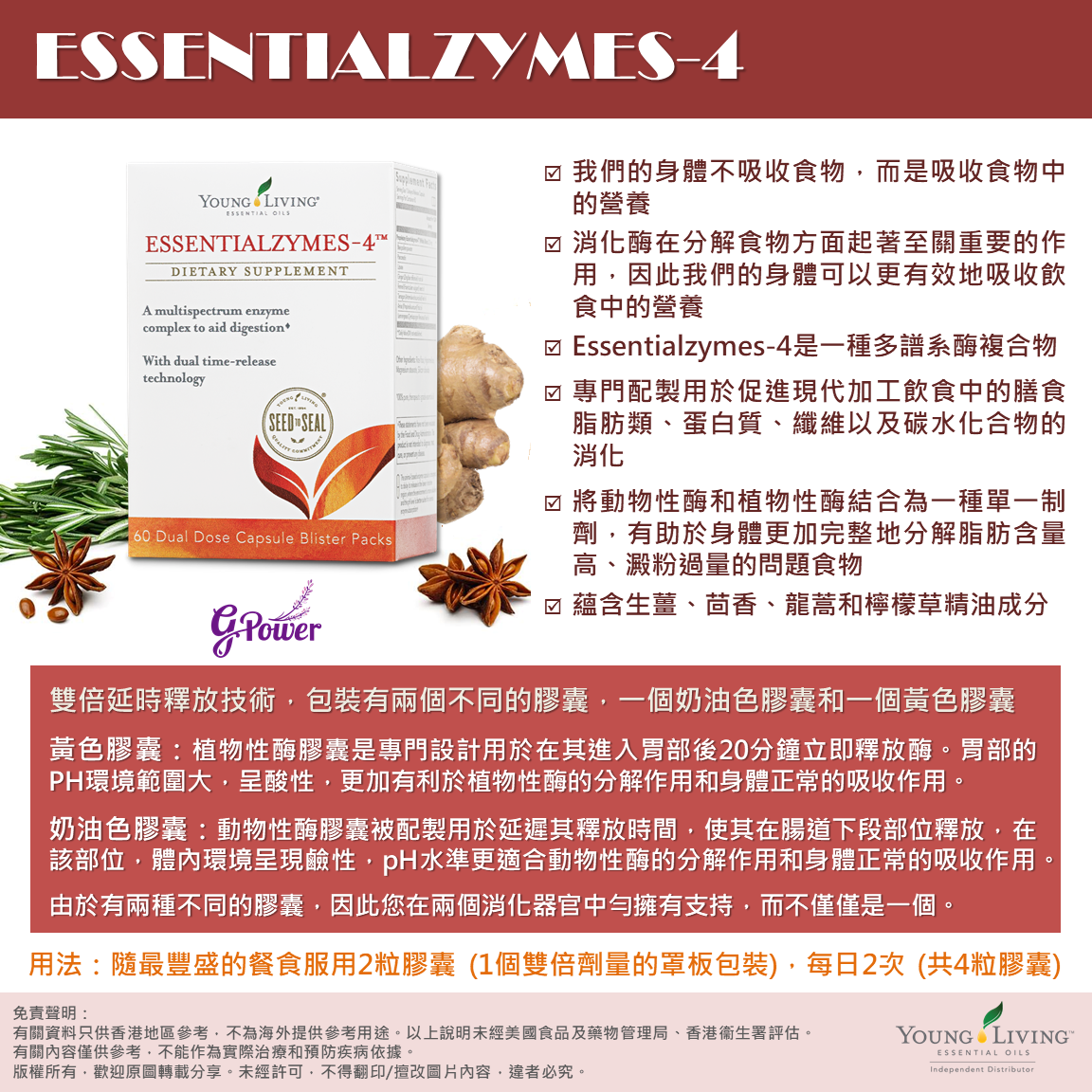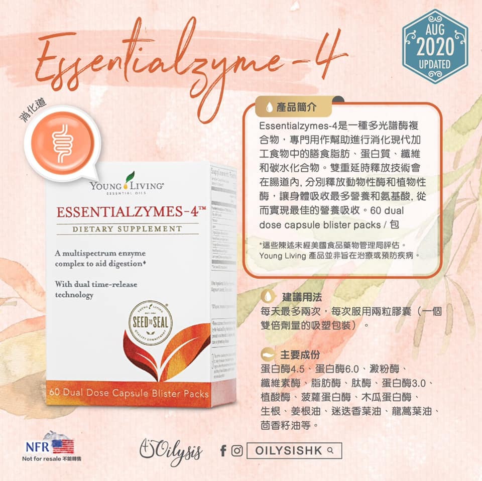 ✨ 天然守護消化力!Young Living Essentialzymes-4 採用 雙重酵素配方,有效分解蛋白質、脂肪及碳水化合物,幫助 促進腸胃健康、吸收營養、提升能量 ⚡。日常保健、飲食調理、養生必備 💚🌿,讓你的健康生活更全面。