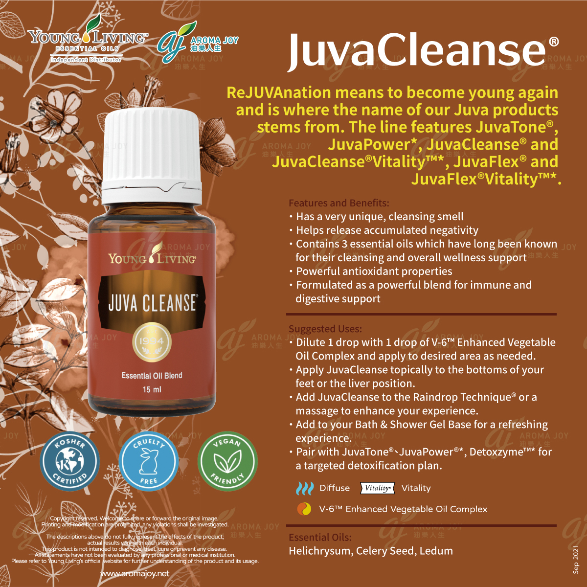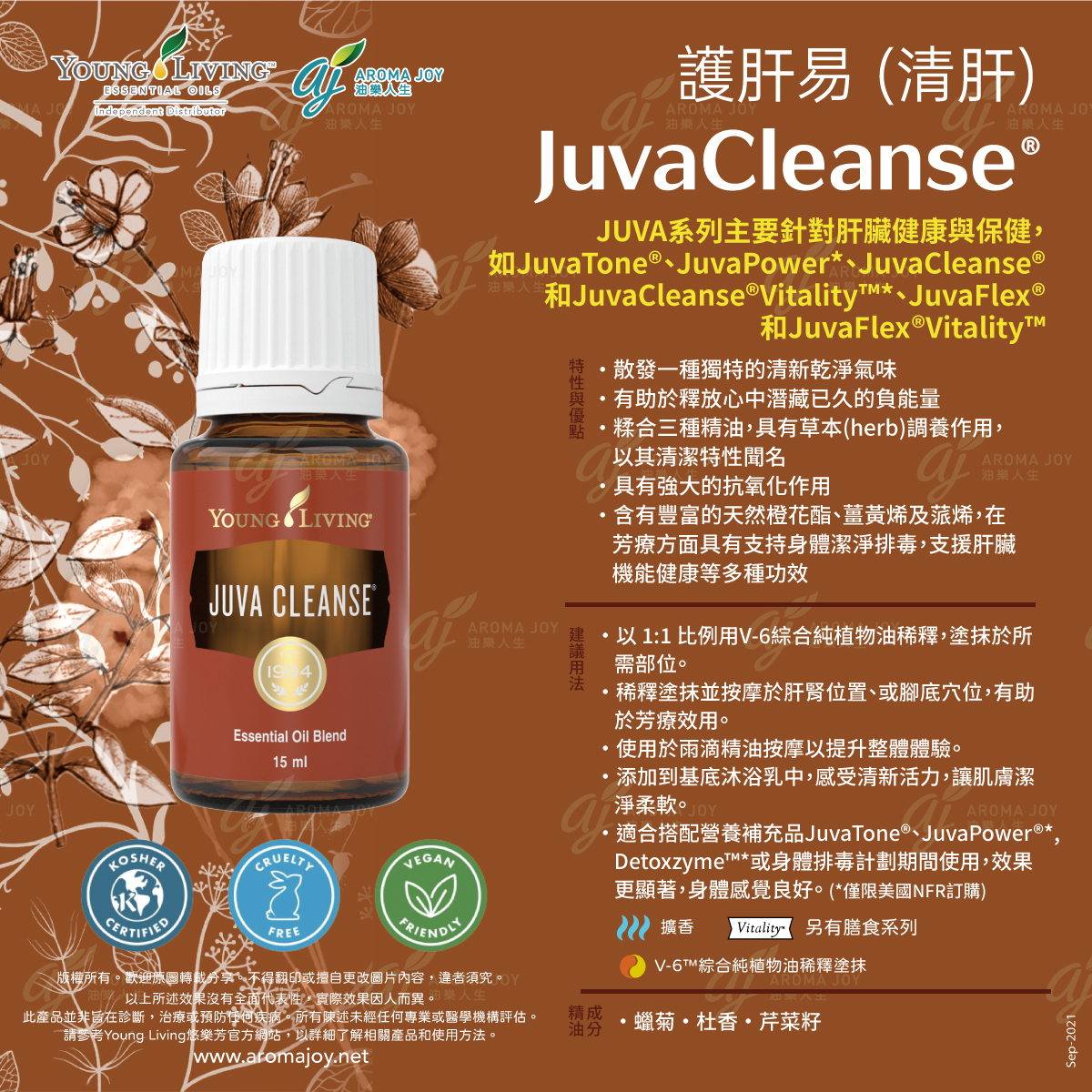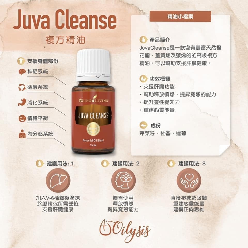 JuvaCleanse 精油 🌱 專為支持肝臟健康而設,蘊含蜀葵草、茴香籽、檸檬草等純天然精油組合,有助於 溫和排毒、促進新陳代謝、舒緩身心壓力。💧 其清新的草本香氣,能淨化環境、安撫情緒,特別適合長期應酬或需要排毒養生人士。✨