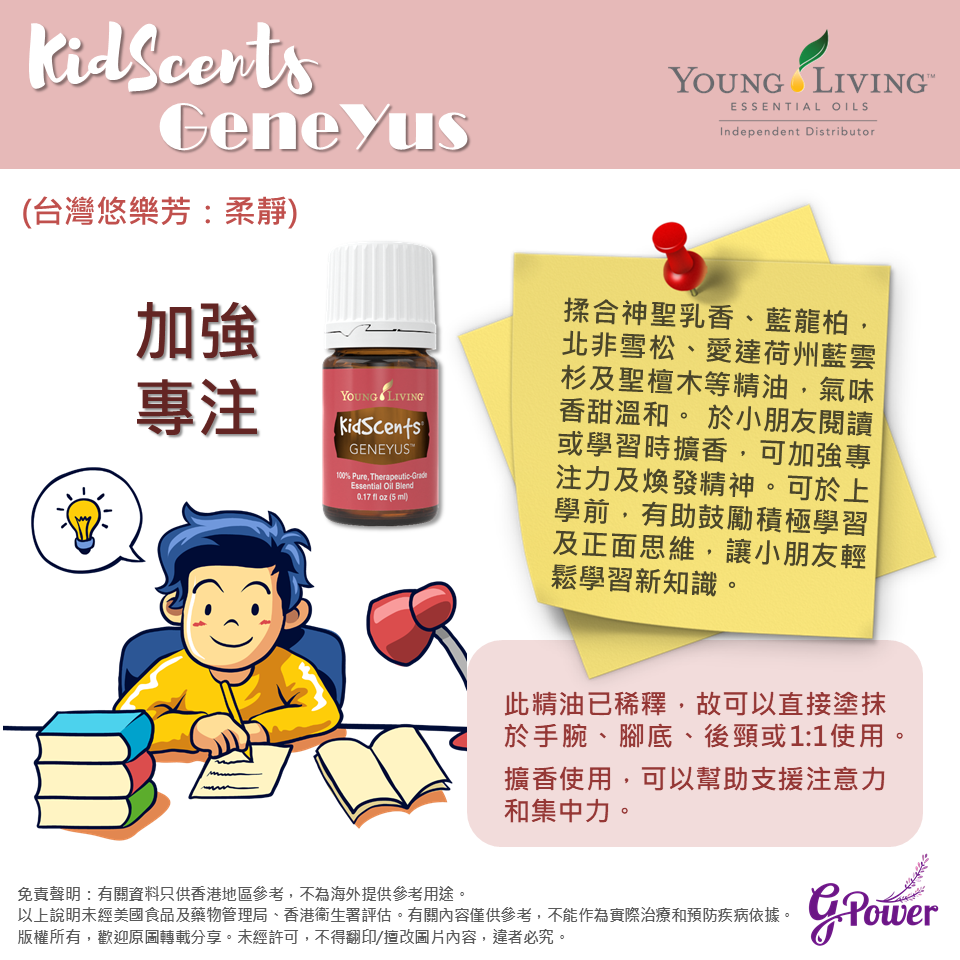 🧠 提升專注力|💡 幫助學習與記憶|👶 安全專為兒童配方|🌿 植物純淨力量|📚 學習考試好幫手|✔️ 官方正品 Young Living Seed to Seal 品質保證