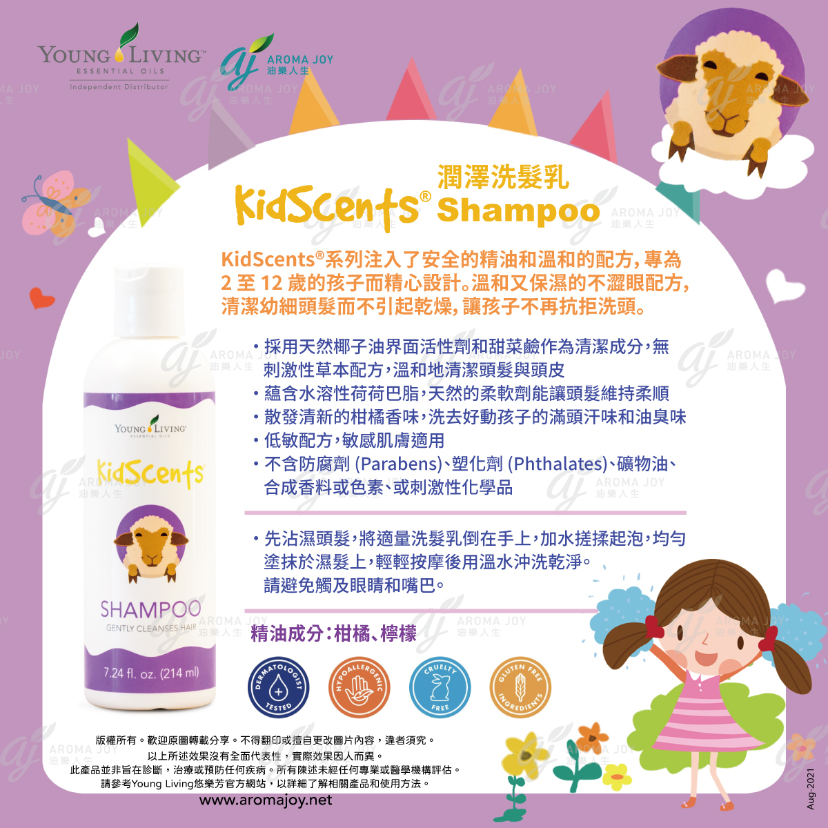 KidScents™ 兒童洗髮精結合 天然精油🌿、溫和清潔成分🫧 與 舒緩香氣🌸,讓頭髮保持 柔順健康、好梳理✨。