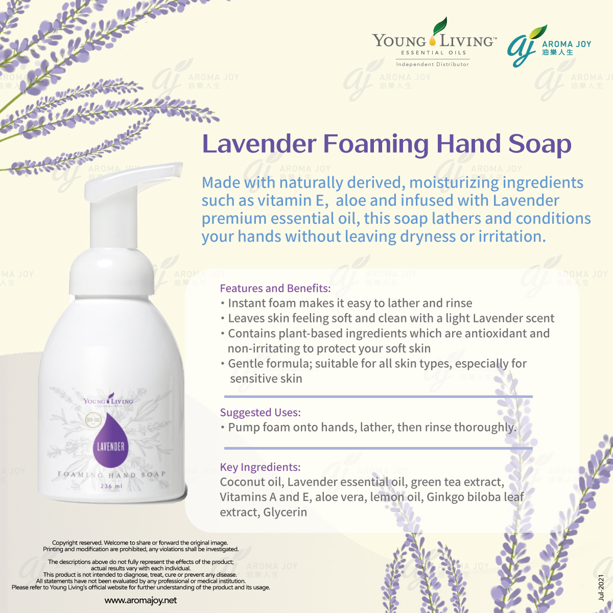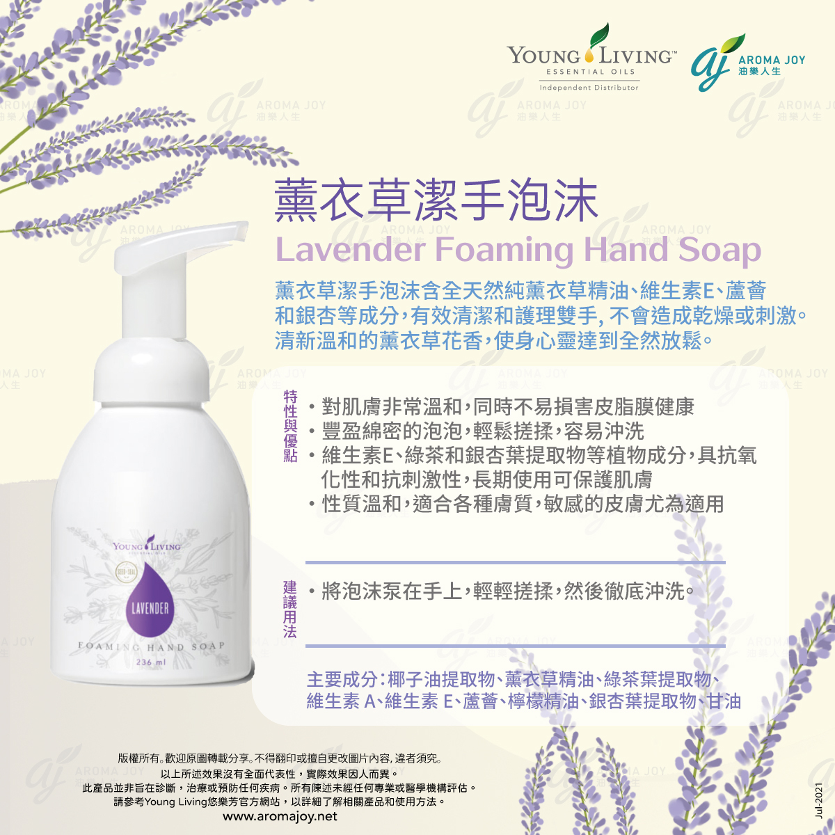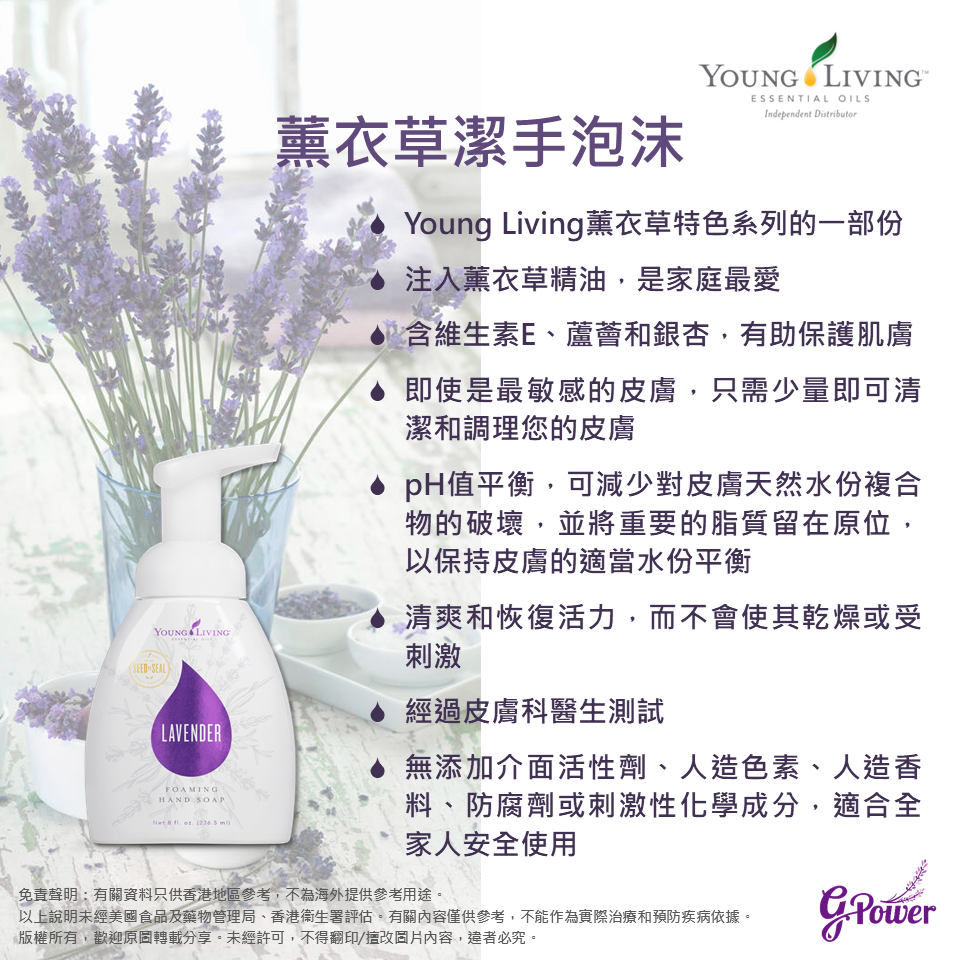 🌿 Young Living 薰衣草泡沫洗手液 💜,結合純正薰衣草精油,溫和潔淨 🧼,滋潤保濕,讓雙手清爽同時散發療癒花香 ✨。每日守護你同家人嘅健康 💕。