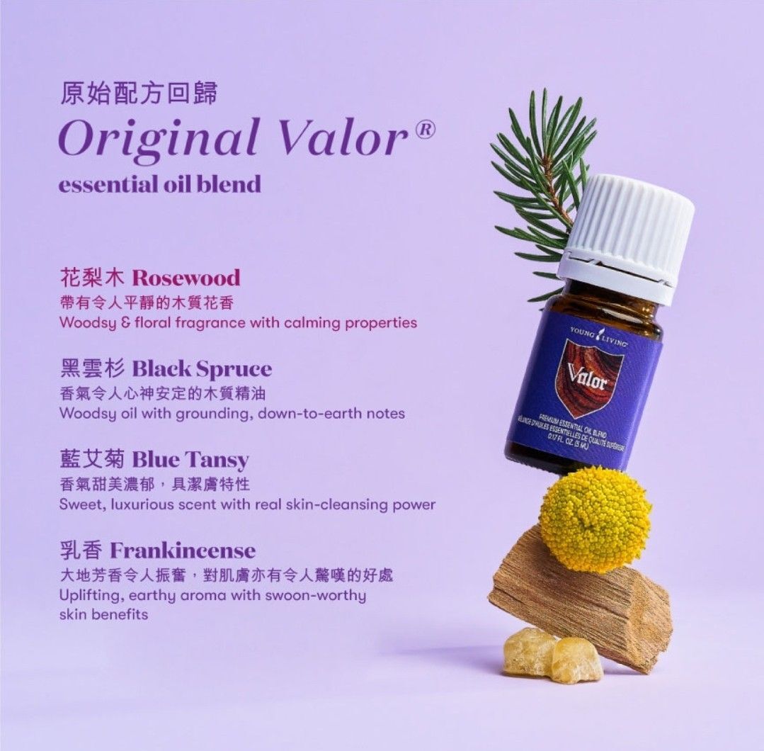 💙 Young Living 經典人氣的 Original Valor 複方精油,融合黑雲杉、藍艾菊、玫瑰木與乳香,帶來平衡與穩定能量 ✨ 幫助釋放壓力、提升勇氣與自信 💪,是日常情緒支持與冥想放鬆的必備選擇 🌿。