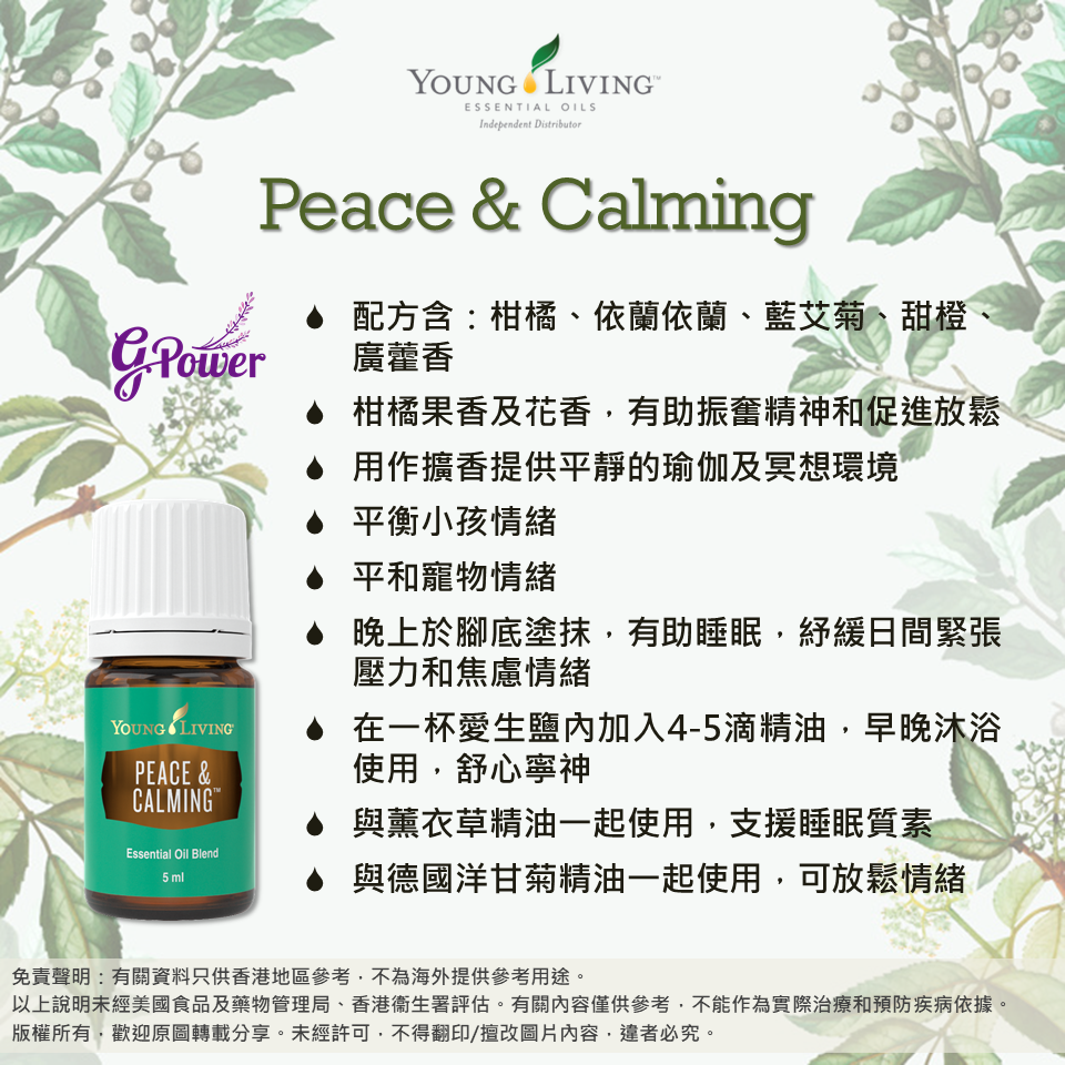 🌿【和平寧靜精油 Peace & Calming®】是 Young Living 熱門人氣調和油之一,由橙花、橘子、藍甘菊、依蘭、廣藿香精油精心融合。💛 清甜果香與柔和花香交織,能幫助放鬆情緒、改善睡眠質素,特別適合睡前薰香或舒壓按摩。💤✨ 無論在繁忙工作後或孩子睡前,都能帶來安心、寧靜與平衡的氛圍。🌌