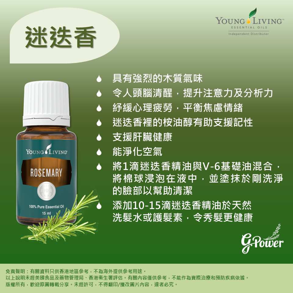 ✨ 著名功效包括 強健髮絲、促進循環、激發記憶力,適合學習、工作及日常養生。無論擴香或頭皮按摩,都能帶來自然活力能量!