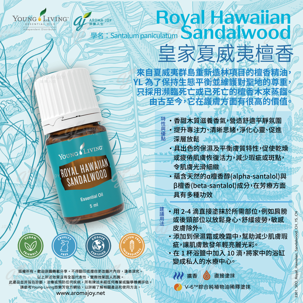 💎 體驗 夏威夷皇家檀香精油 的尊貴魅力 🌴!來自夏威夷的稀有檀香,能幫助舒緩壓力、安定情緒 🧘、修護肌膚 💆,帶來深層放鬆與靈性力量 ✨,是冥想與護膚的首選!