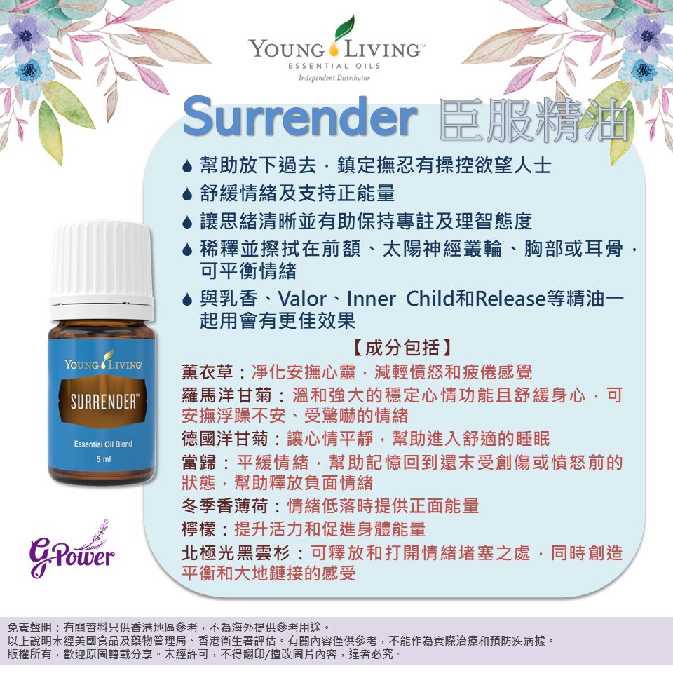 🌸 放下壓力,擁抱平靜。Young Living Surrender 精油調和油結合多款舒緩芳香,幫助您釋放緊繃、敞開心靈,迎接內心的安寧與自在。🌿💖