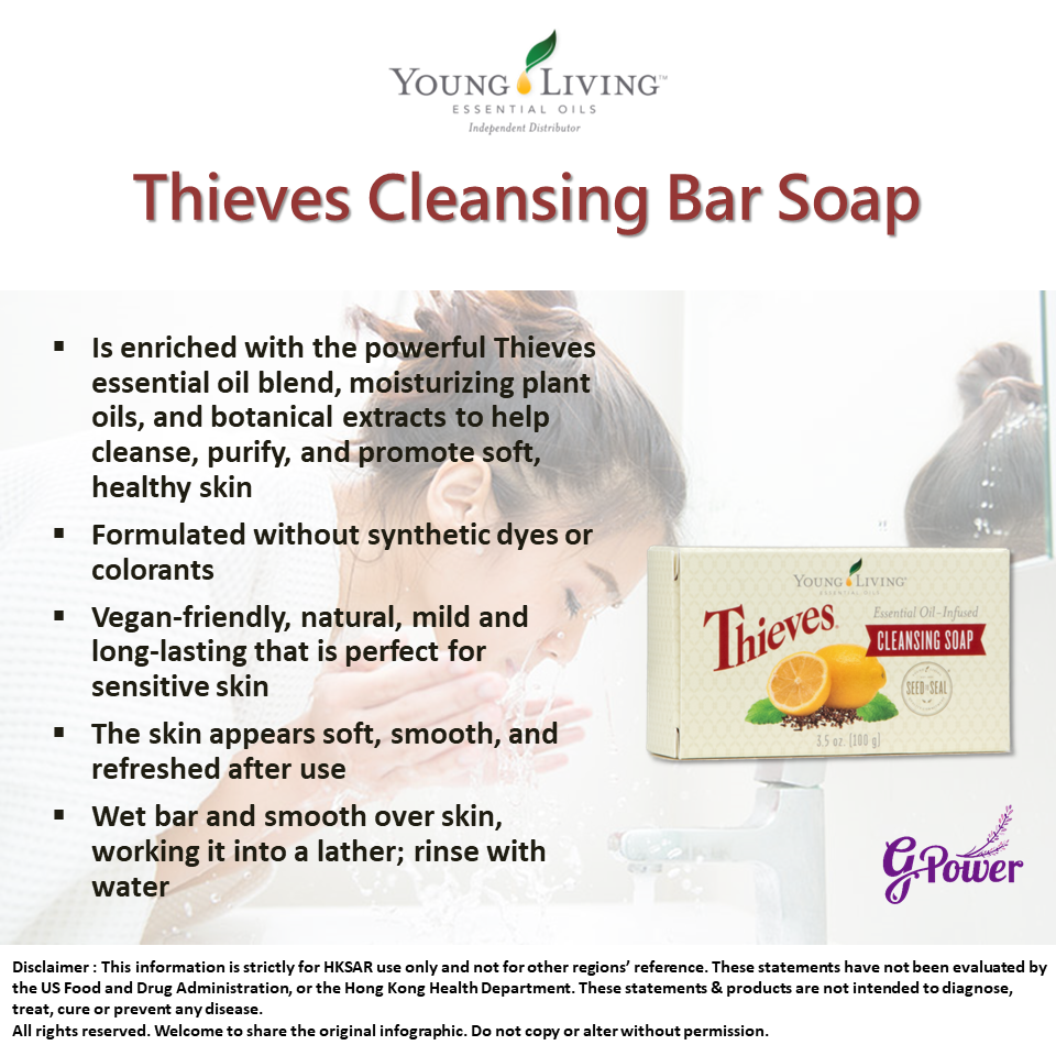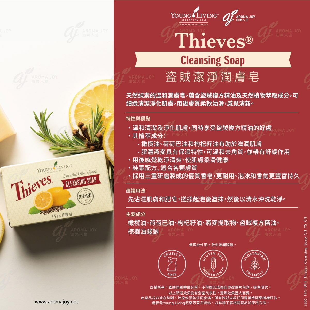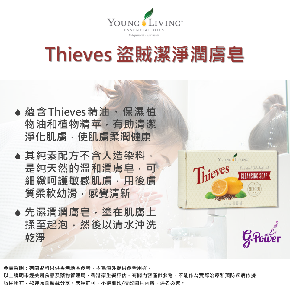 Young Living 盜賊潔膚皂結合 Thieves® 精油配方,有效潔淨雙手與身體,帶來清新草本香氣 🌿。天然植物成分,溫和護膚不乾澀 💧,同時增強日常防護力 🛡。無論日常清潔或外出回家後使用,都是全家人安心的防護首選 👨👩👧👦。