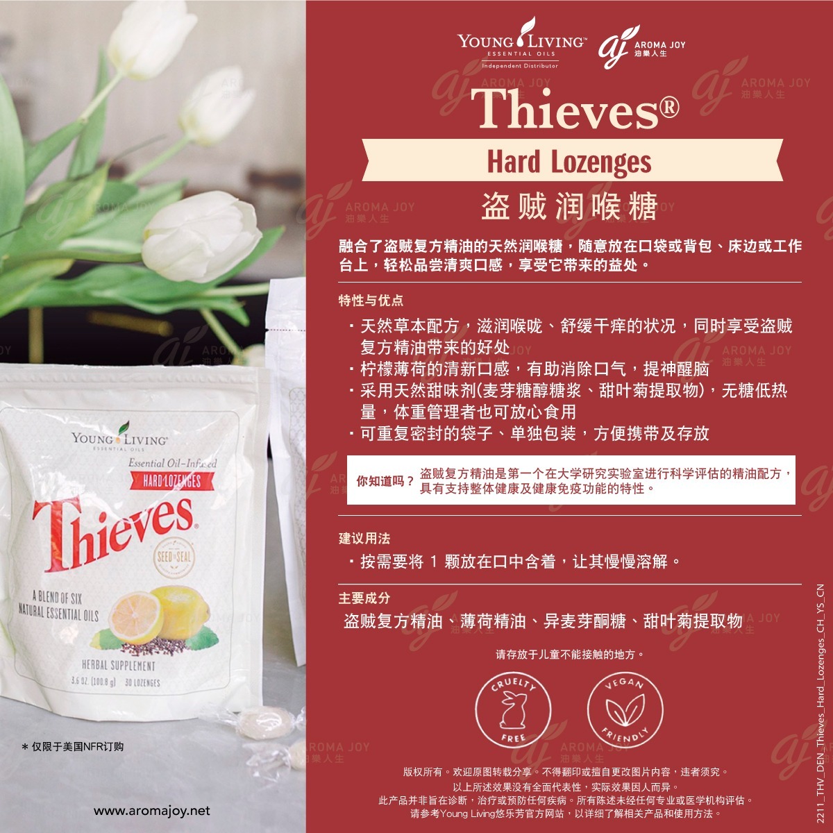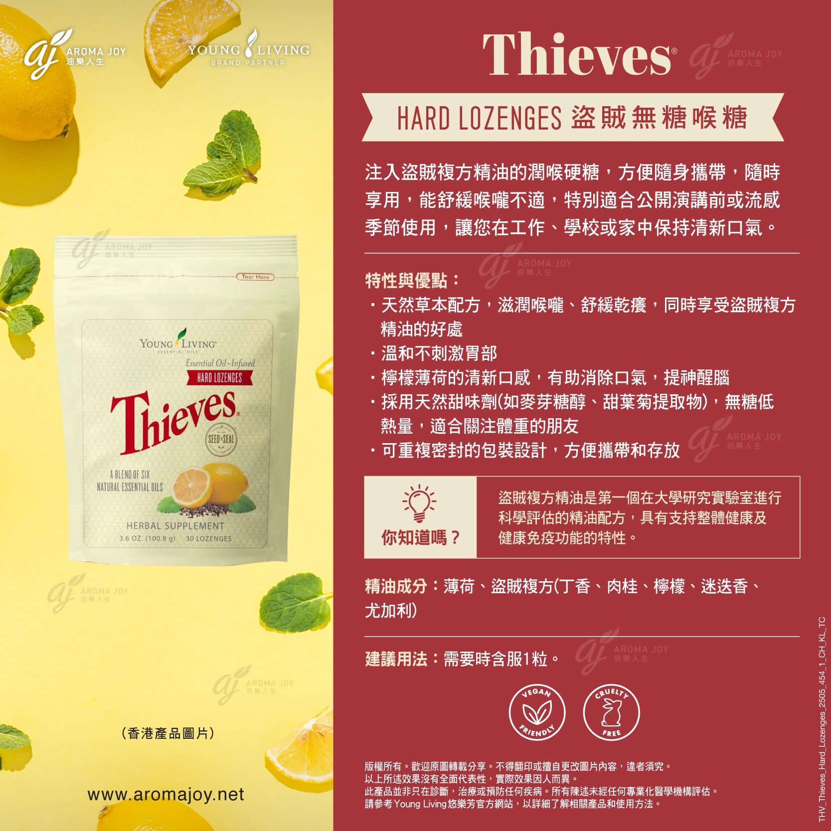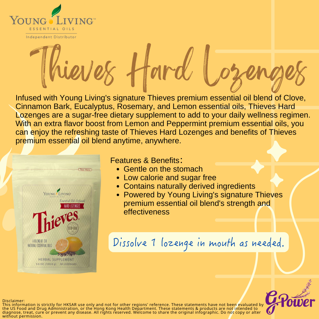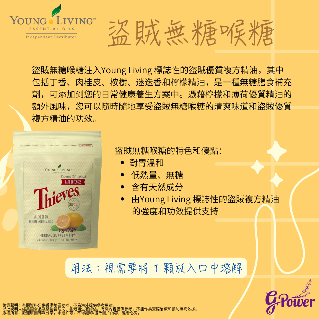 🌿 Thieves® 硬糖潤喉錠 💎 含有專利 Thieves 精油配方(丁香、檸檬、肉桂、尤加利、迷迭香),天然草本守護喉嚨 ✅ 幫助舒緩乾燥不適 💧,提升口腔清新感 🍋。無人工色素,隨時隨地帶來溫和保護 ✨。