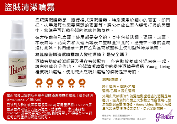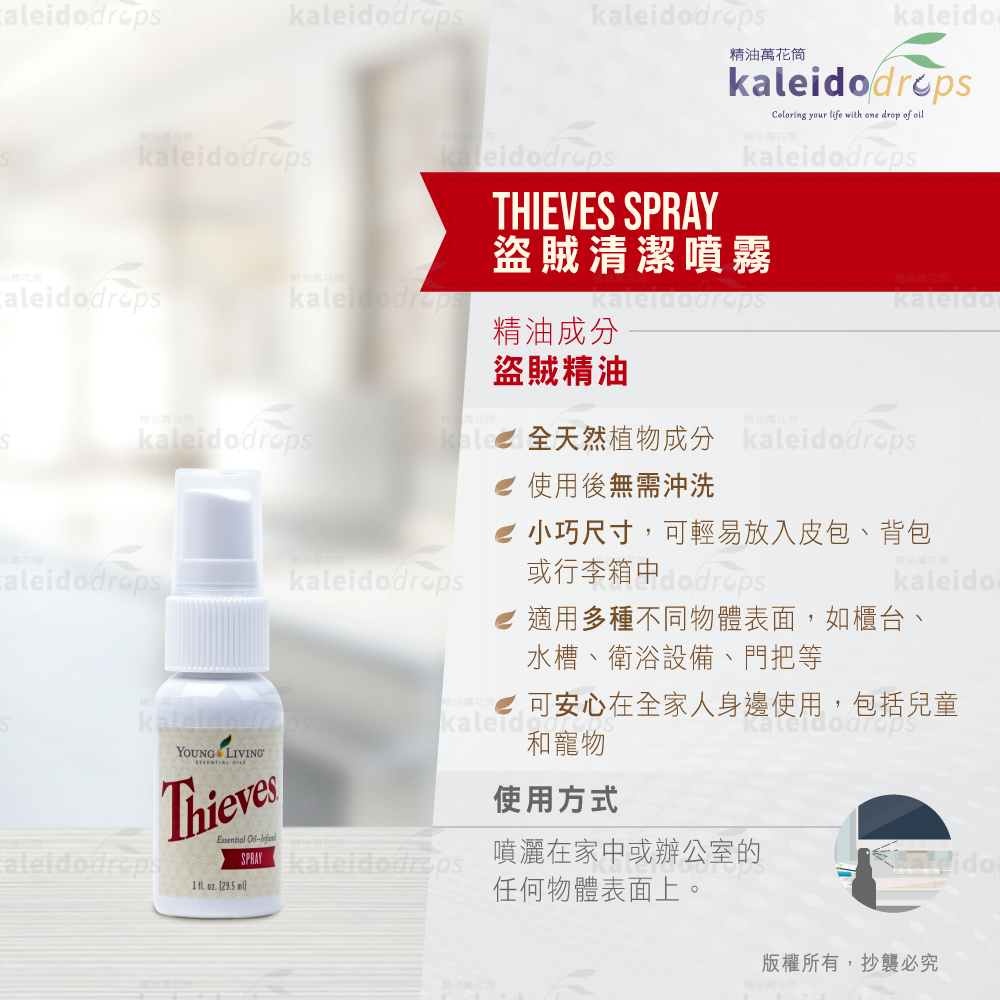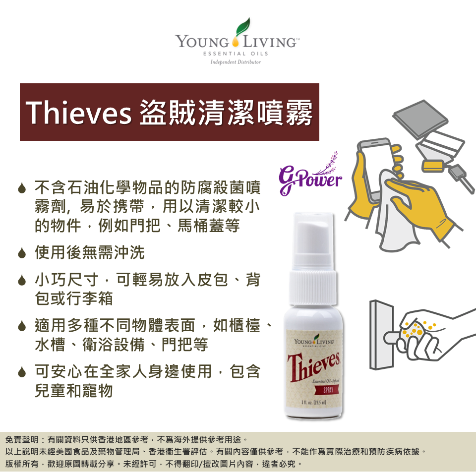 盜賊防護噴霧蘊含專利 Thieves® 精油配方,高效抑菌淨化空氣,隨時隨地守護全家健康,讓環境清新潔淨。