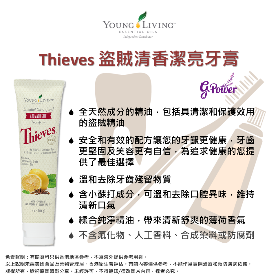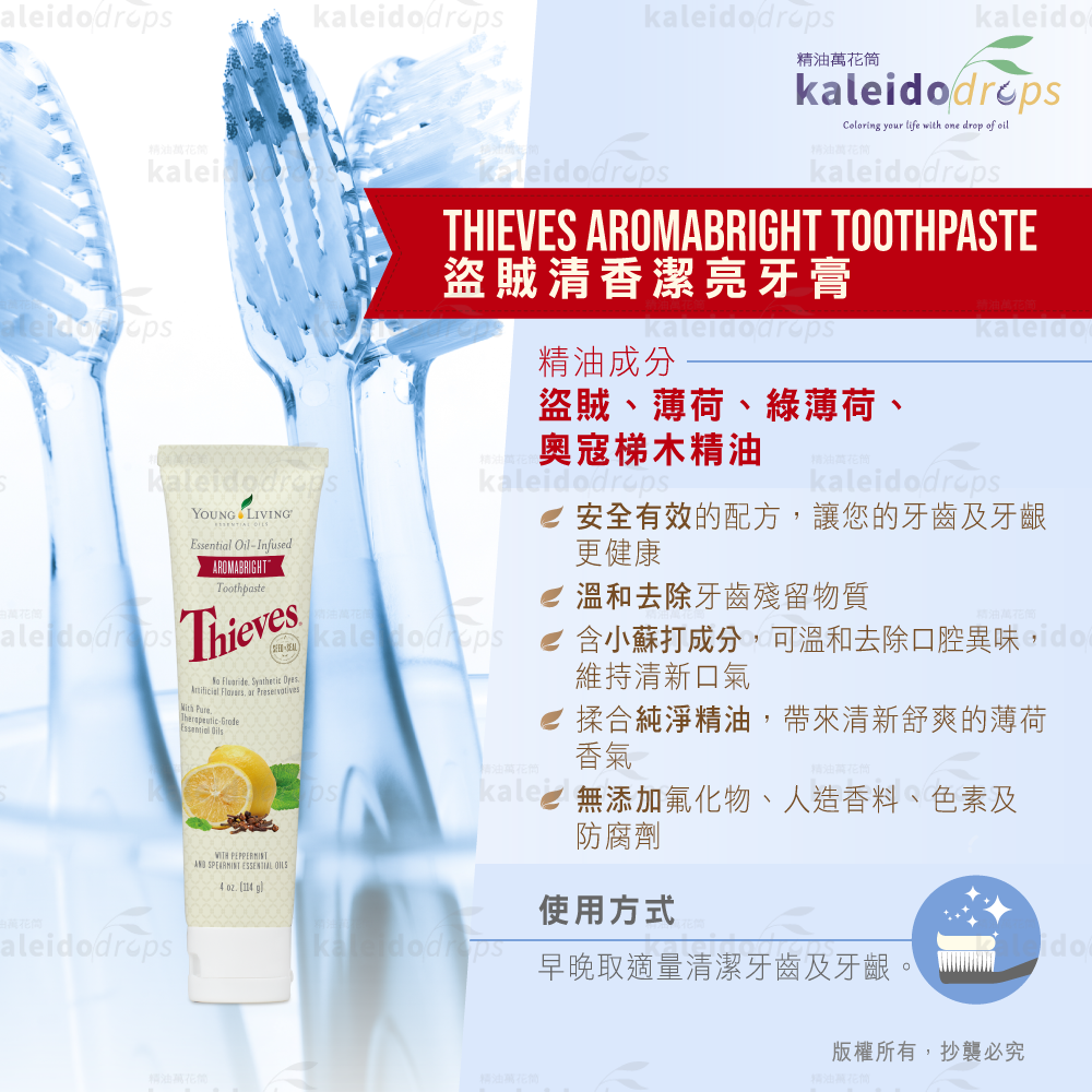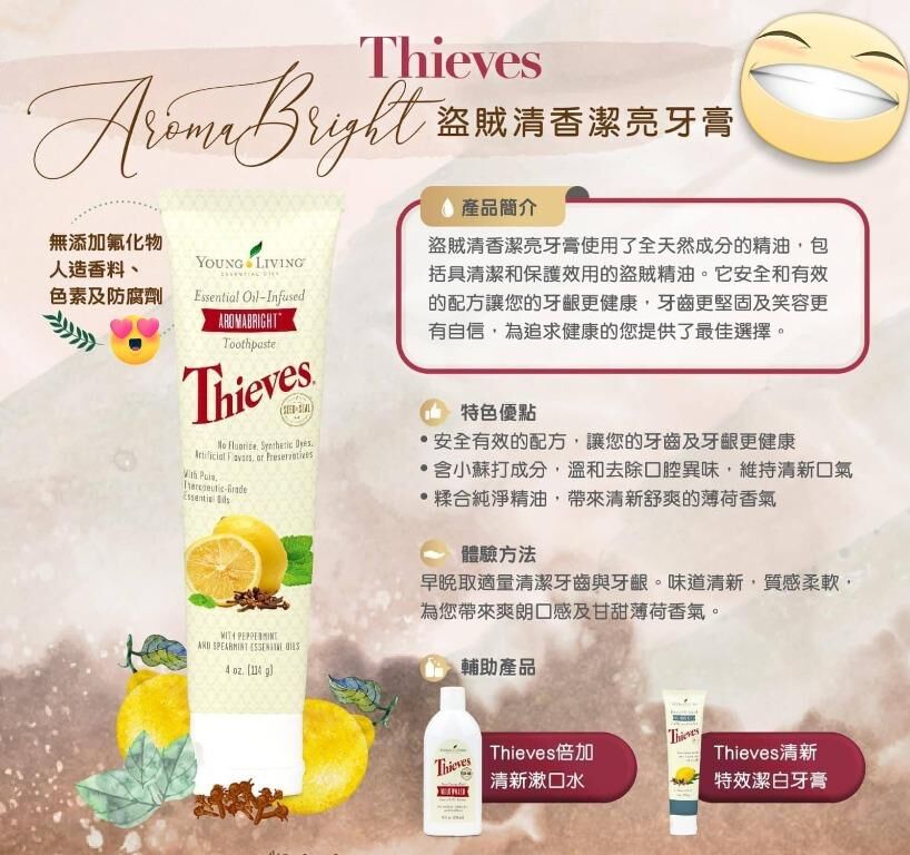 結合 Thieves® 複方精油 🌿,天然無氟配方 🦷,有效清潔牙齒、清新口氣 😁✨,守護口腔健康。適合全家每日使用,帶來自然清爽的自信笑容。