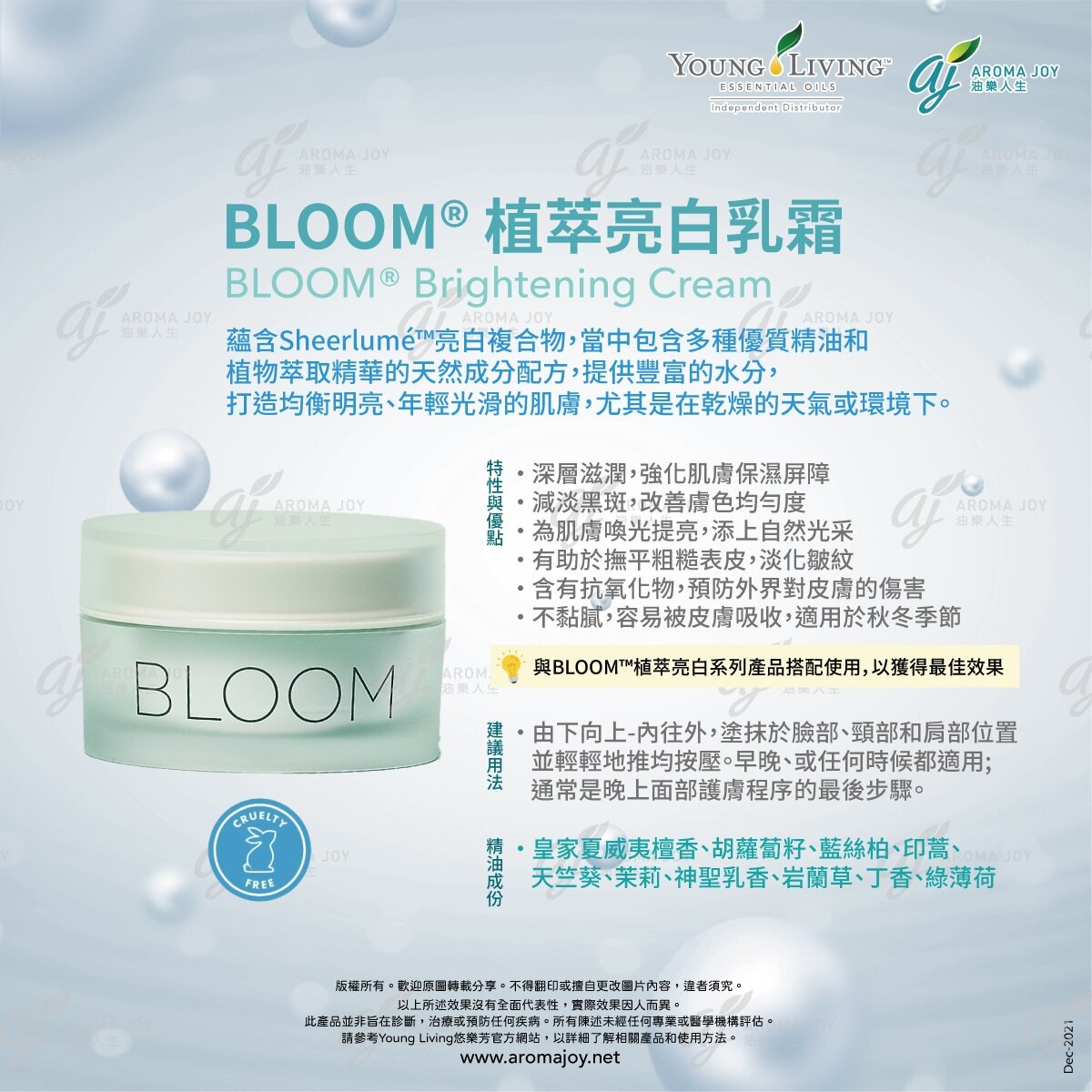🌸 綻放你的自然光澤!Young Living Bloom 亮采滋潤面霜 富含天然植萃與精油精華,質地清爽易吸收,深層保濕 💧、提亮膚色 ✨,讓肌膚散發健康光澤 💖。每天使用,讓你擁有水潤、亮麗、自信的美肌!