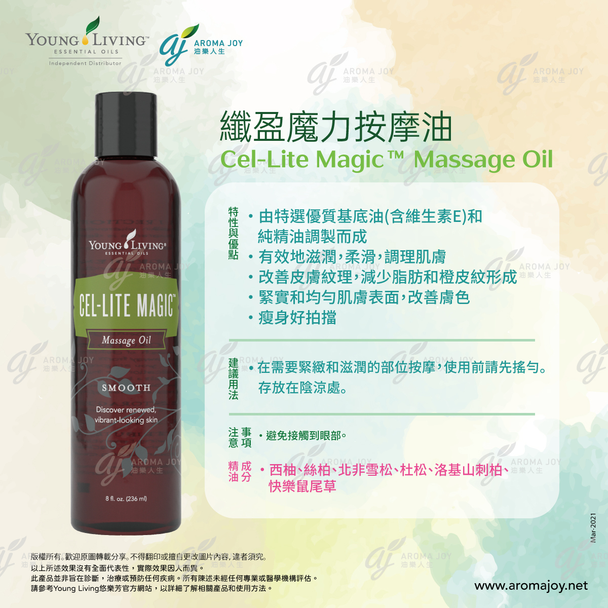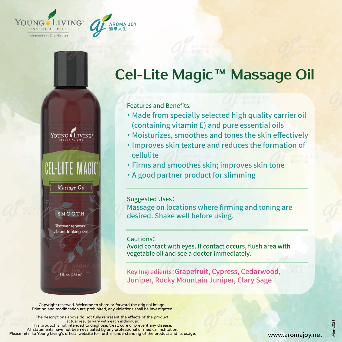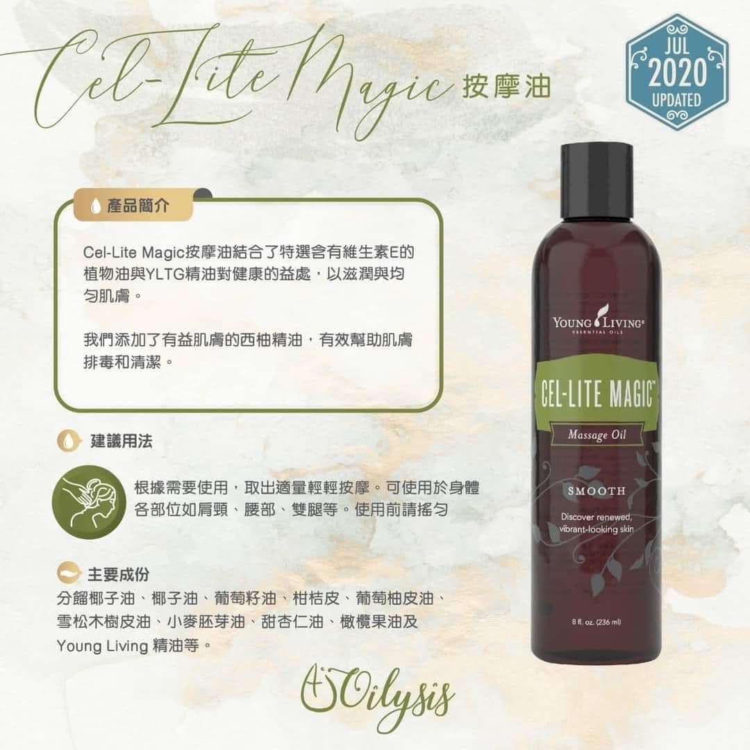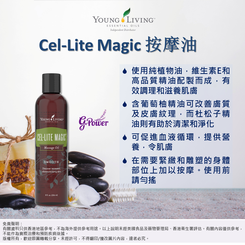 感受 Cel-Lite 魔法按摩油 的魅力!融合純淨精油與小麥胚芽油,幫助 緊緻肌膚、排毒淨化、滋養修護,每日按摩,促進循環,減淡橙皮紋,打造柔滑緊緻美肌。🌸💖🌱