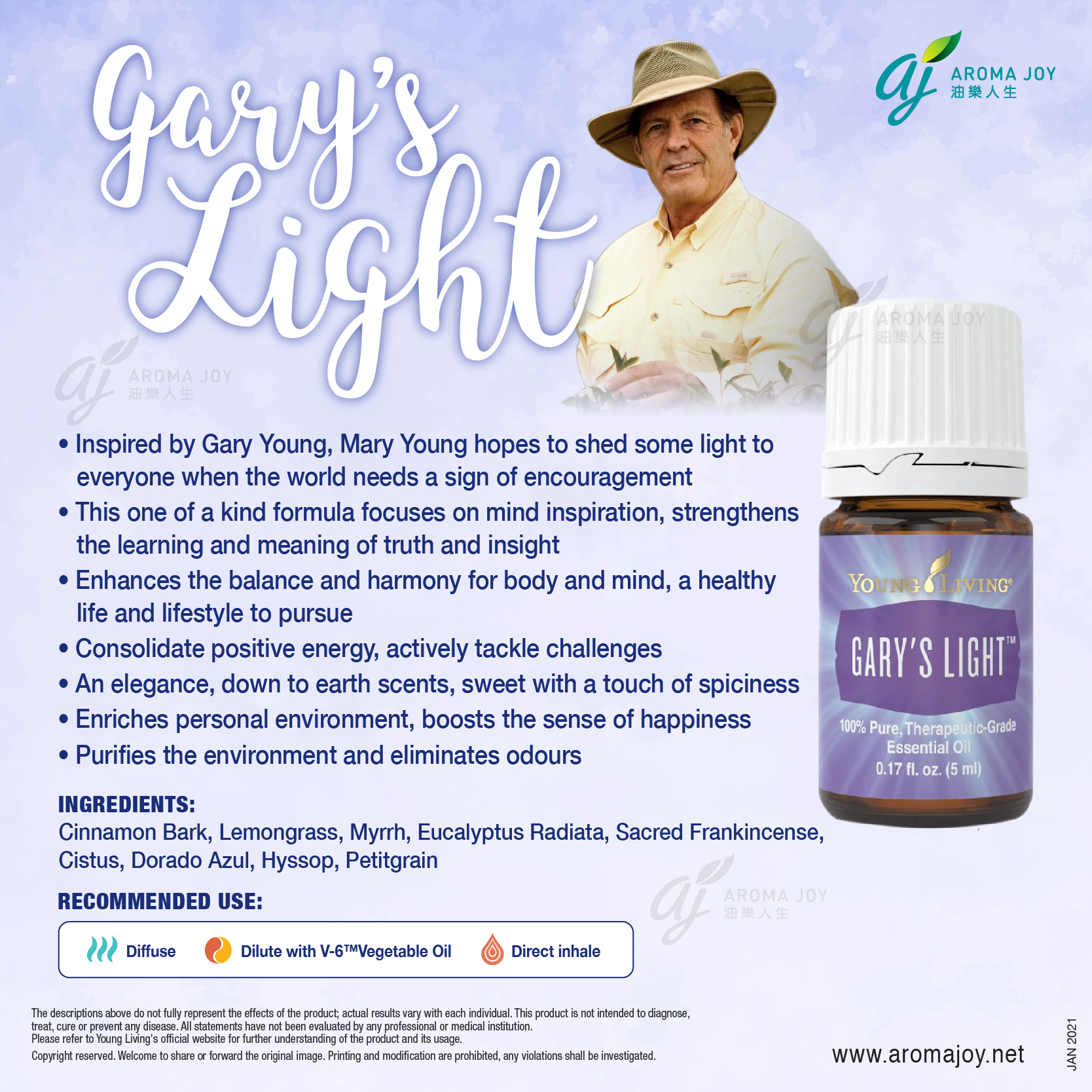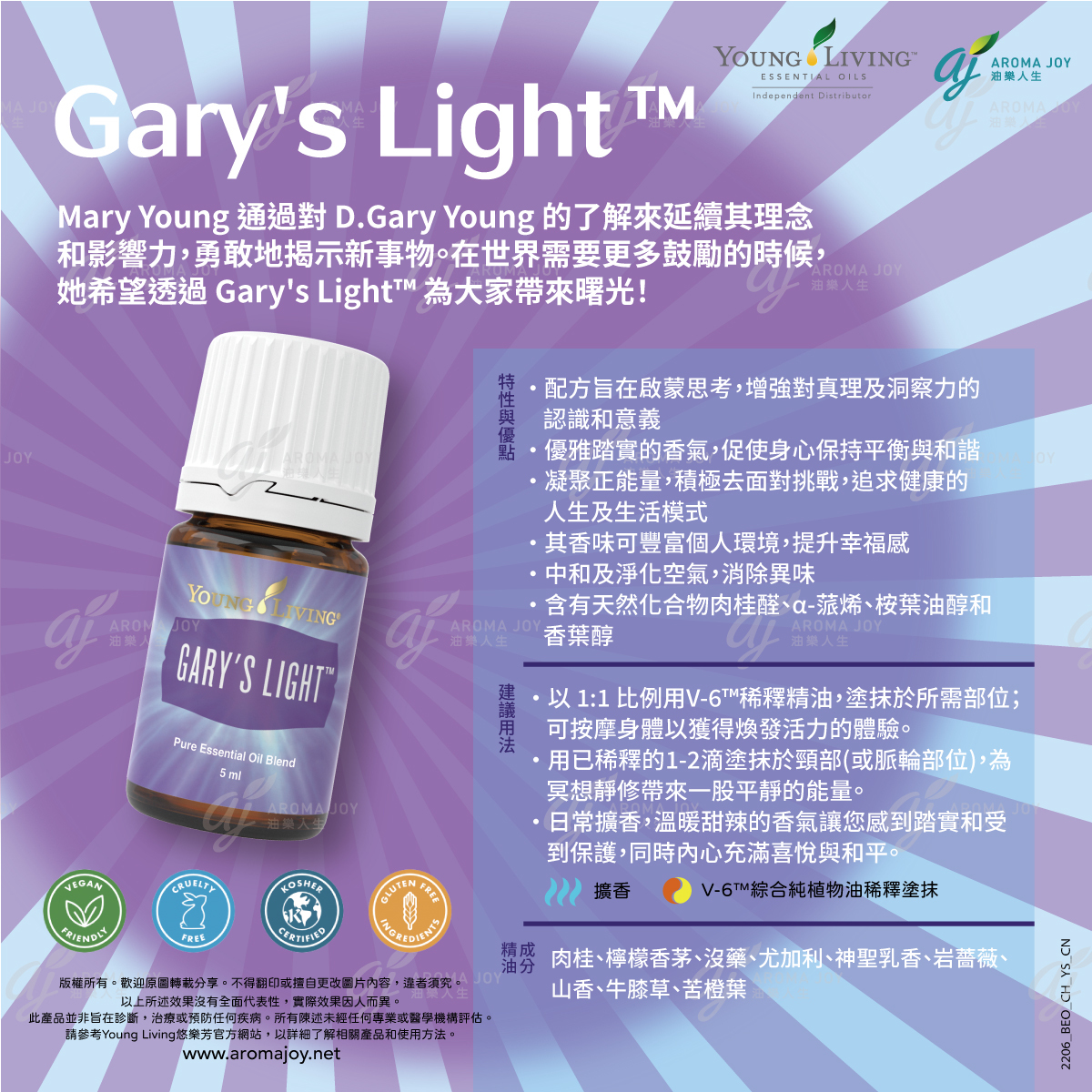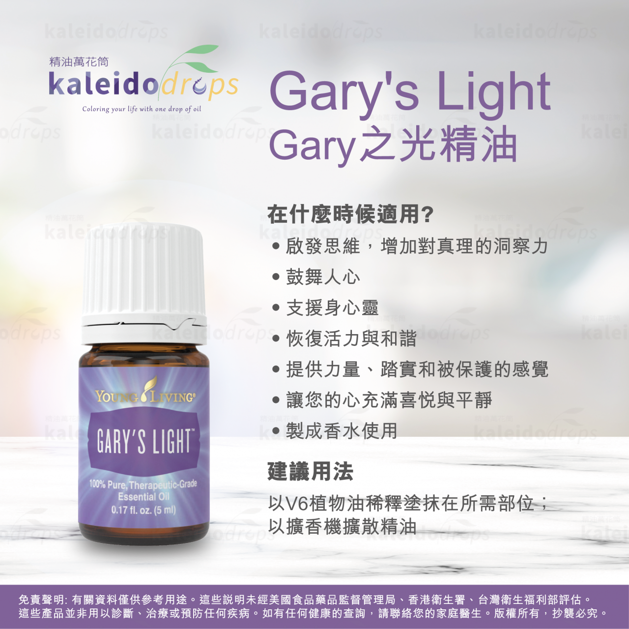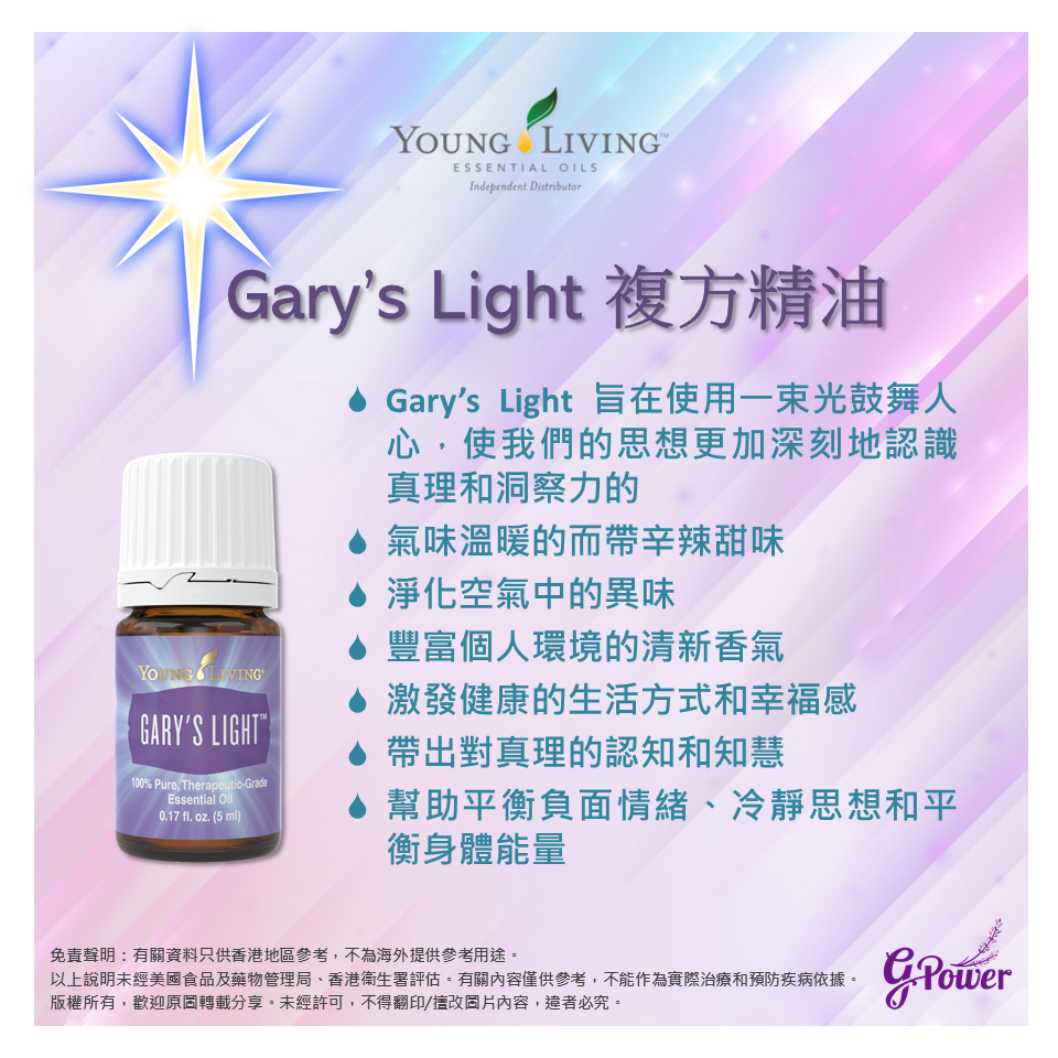 ✨ Gary’s Light™ 複方精油 由 Young Living 創辦人 Gary Young 配方 🌟,結合溫暖、清新的香氣,幫助提升正能量 💪、穩定情緒 🌿,帶來內在平和與靈性啟發 💫。