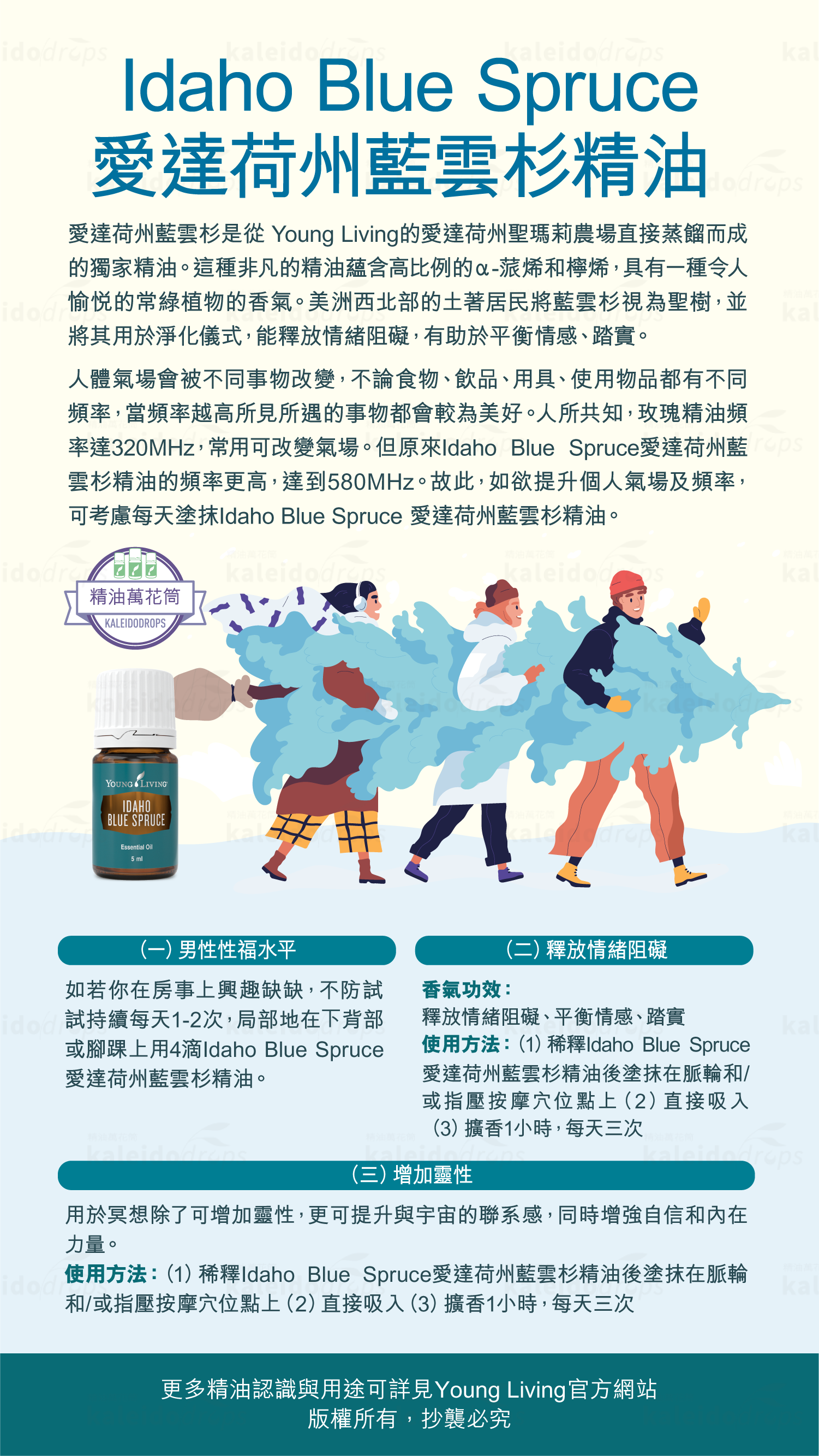 💧 源自美國愛達荷州壯麗藍雲杉,經蒸餾萃取而成的珍稀精油。獨特清新木質香氣,能幫助穩定情緒、舒緩壓力,增強內在力量。適合冥想、肌肉放鬆或日常提振活力。🌿✨