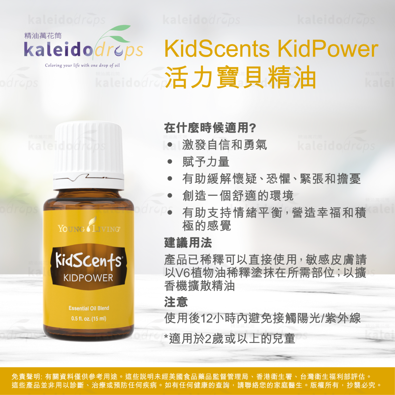 用 Young Living KidScents KidPower 精油 🌟,給孩子滿滿的勇氣與自信!這款甜美又安心的配方,專為兒童設計,能提升正能量、自信心與情緒平衡 💛🌈。無論上學、遊戲或睡前,讓孩子感覺更堅強、放鬆,勇敢綻放光芒 ✨。