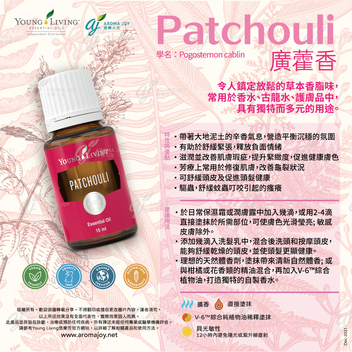 ✨ 體驗 Young Living 廣藿香精油 的沉穩草本氣息。它能 舒緩緊張情緒、平衡油性或乾燥肌膚、促進身心放鬆,是日常保養與芳療的必備好物。💆♀️🌿