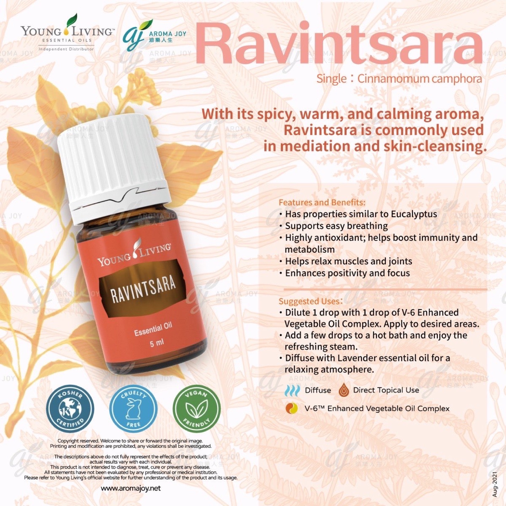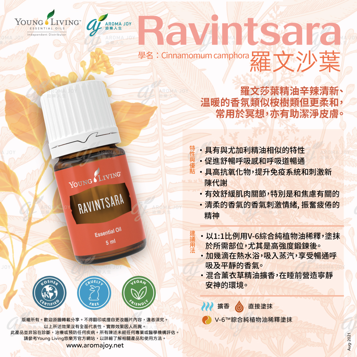 感受 Young Living 羅文莎葉精油 🌿✨ 帶來的清新能量!此精油以淨化、舒緩的香氣著稱,能幫助呼吸更順暢、思緒更清晰,並支持自然免疫防護 💪🌱。非常適合換季時擴香使用 🍃,或搭配基底油按摩,讓身心煥發活力 💆♀️。