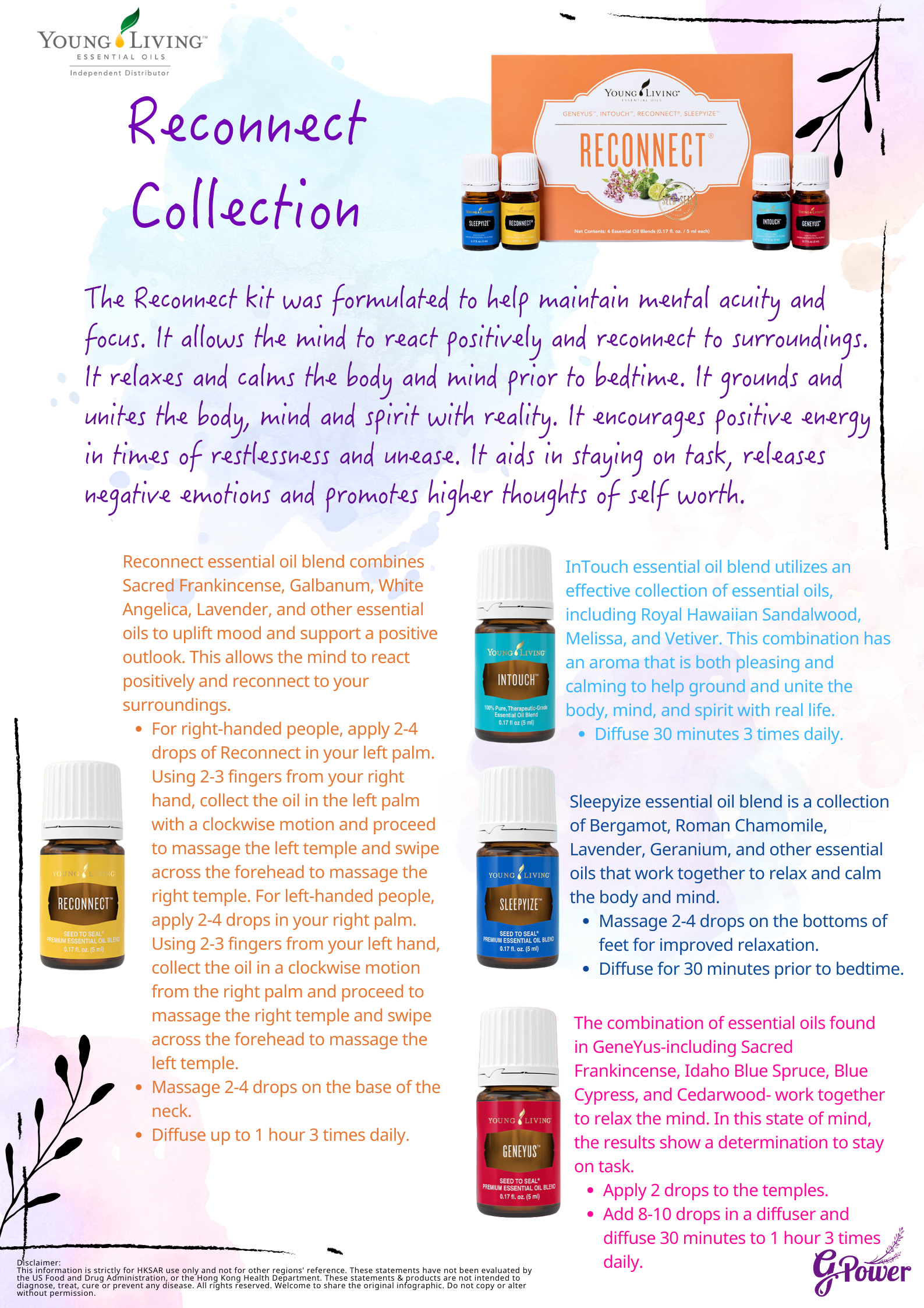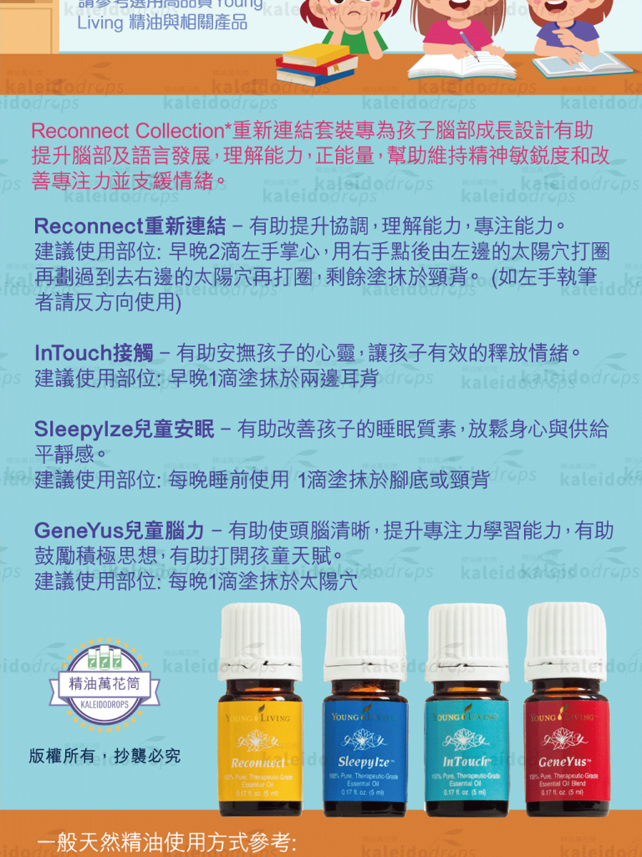 ✨ Young Living Reconnect™ 系列精油套裝,專為提升專注力、情緒穩定與內心平靜而設。特別適合小朋友、學生及需要放鬆安定能量的成人,融合多款純正精油,帶來清晰思緒、心靈平衡與安寧感。🌱💆♀️📚